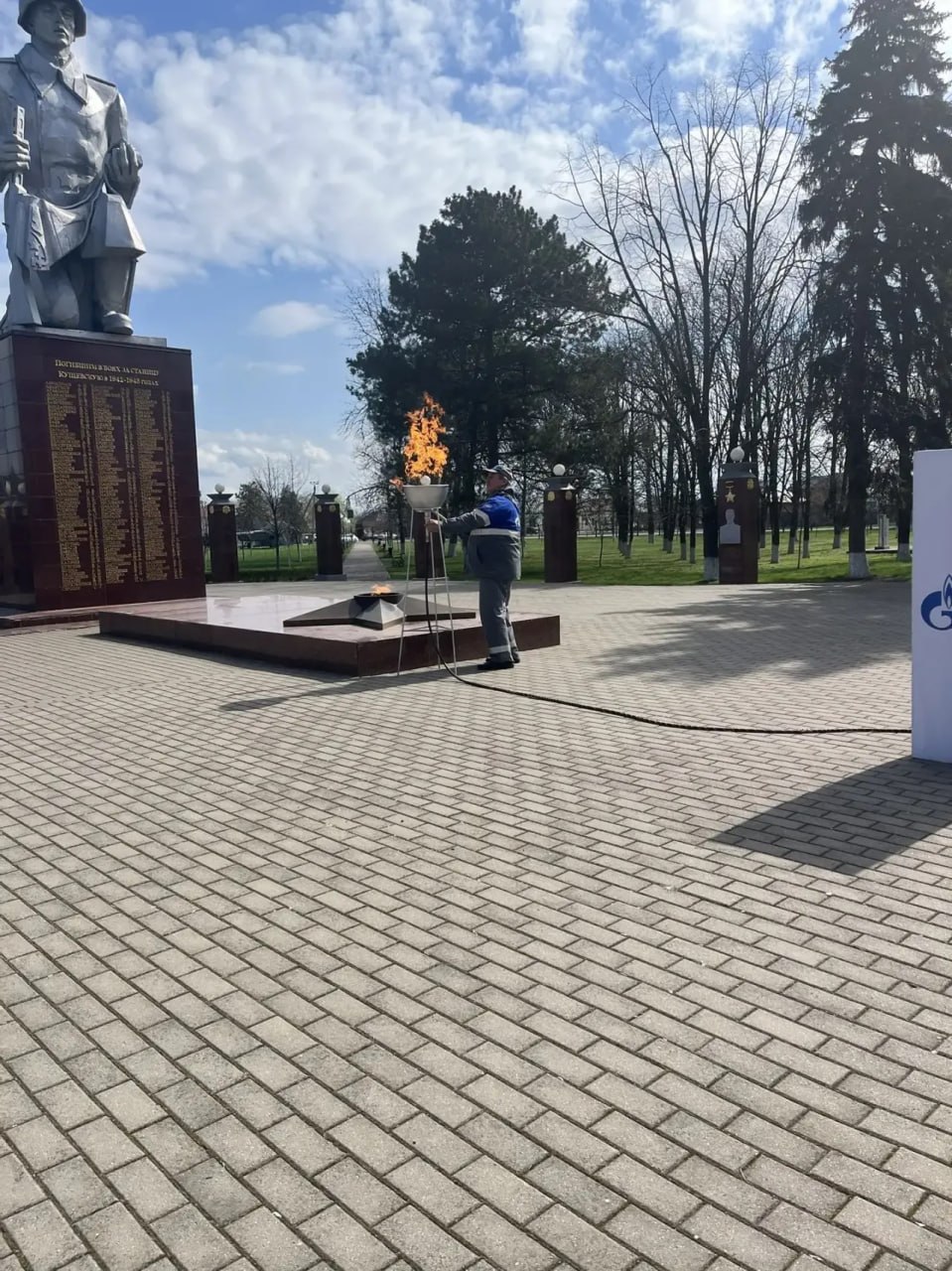 Накануне праздничных мероприятий, посвященных Дню Победы в Великой Отечественной войне, специалисты «Газпром газораспределение Краснодар» проводят работы по техническому обслуживанию мемориальных комплексов с Вечными огнями, работающих на сетевом природном газе.