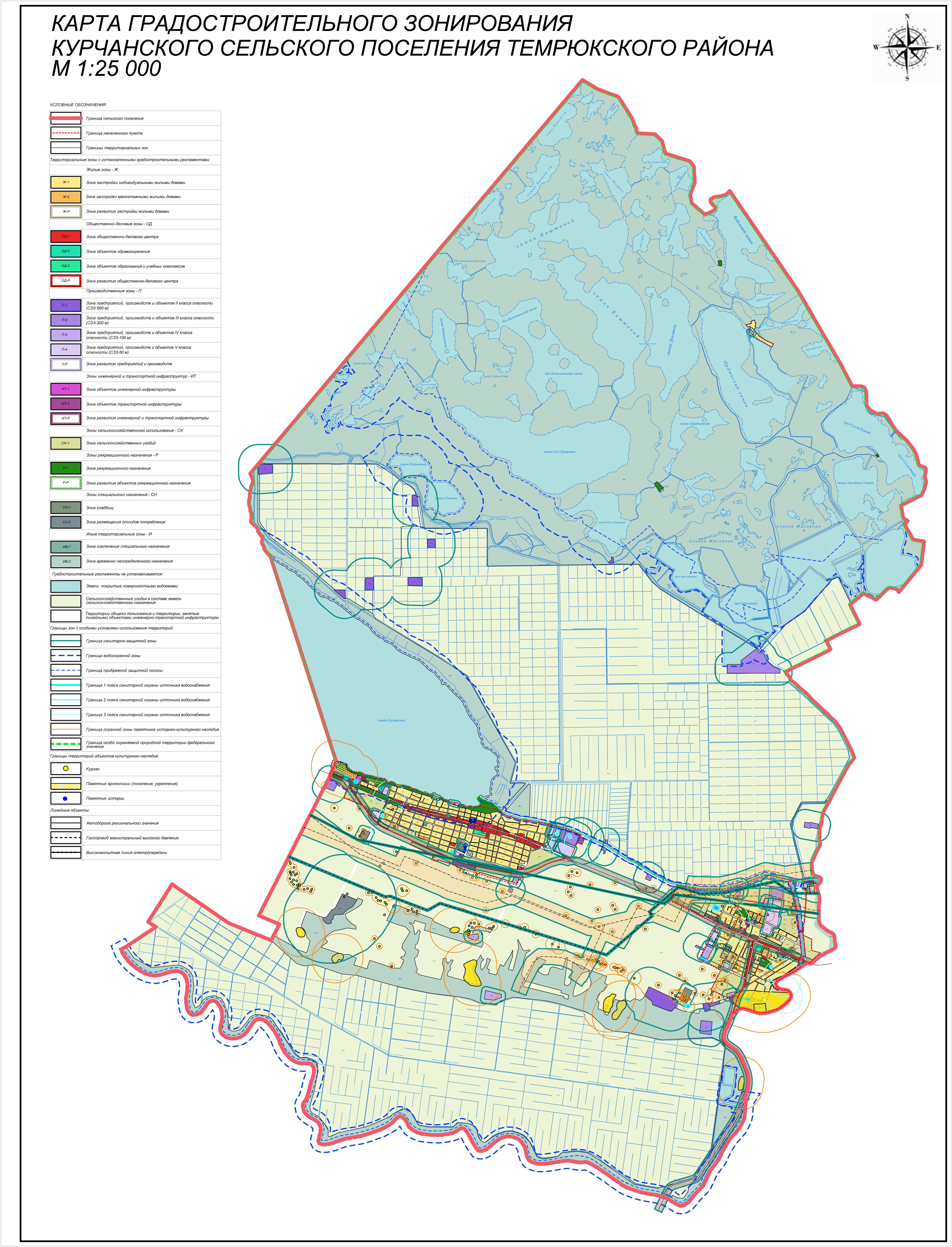 Карта градостроительного зонирования Курчанского сельского поселения Темрюкского района М 1-25000