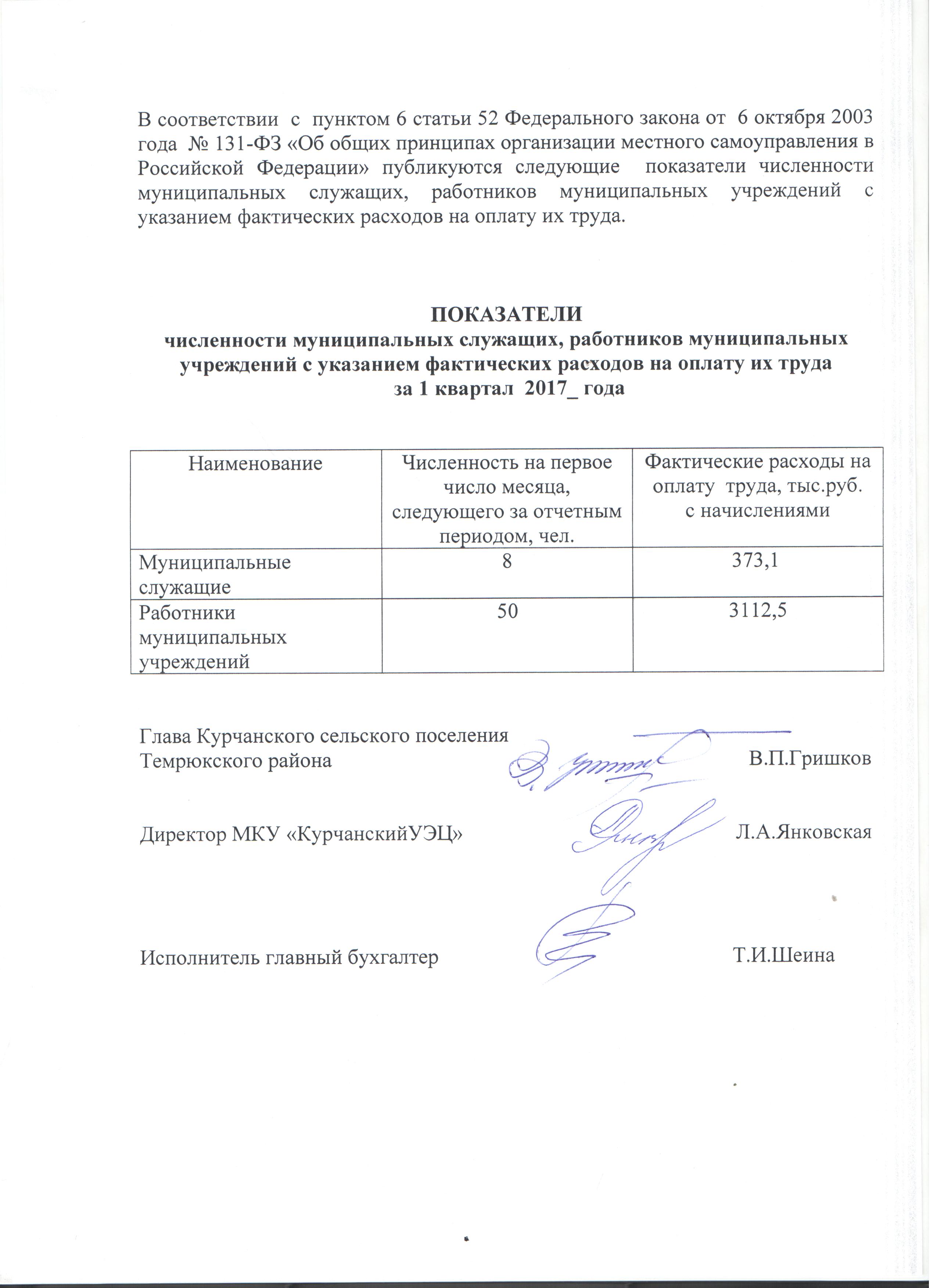 ПОКАЗАТЕЛИ численности муниципальных служащих, работников муниципальных учреждений с указанием фактических расходов на оплату их труда за 1 квартал 2017 года