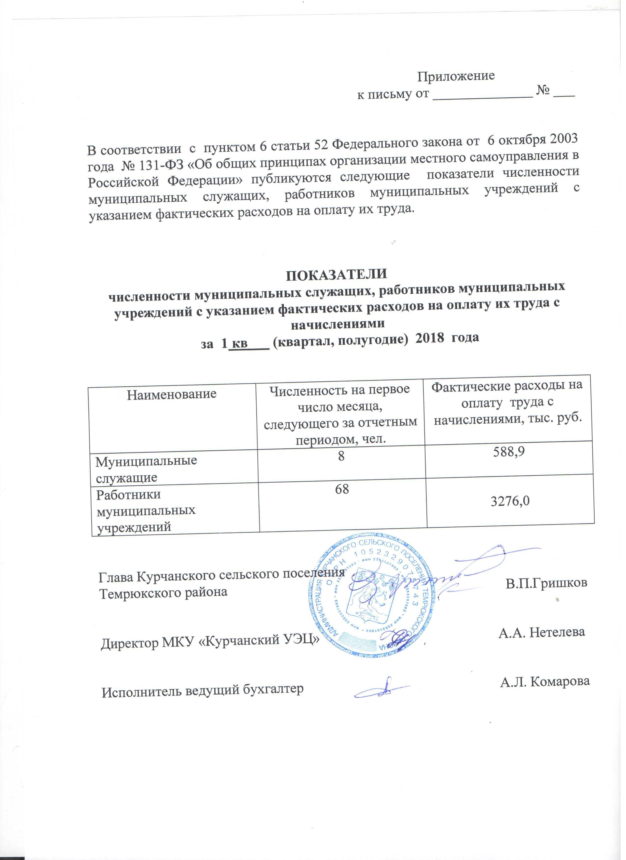 ПОКАЗАТЕЛИ численности муниципальных служащих, работников муниципальных учреждений с указанием фактических расходов на оплату их труда за 1 квартал 2018 года