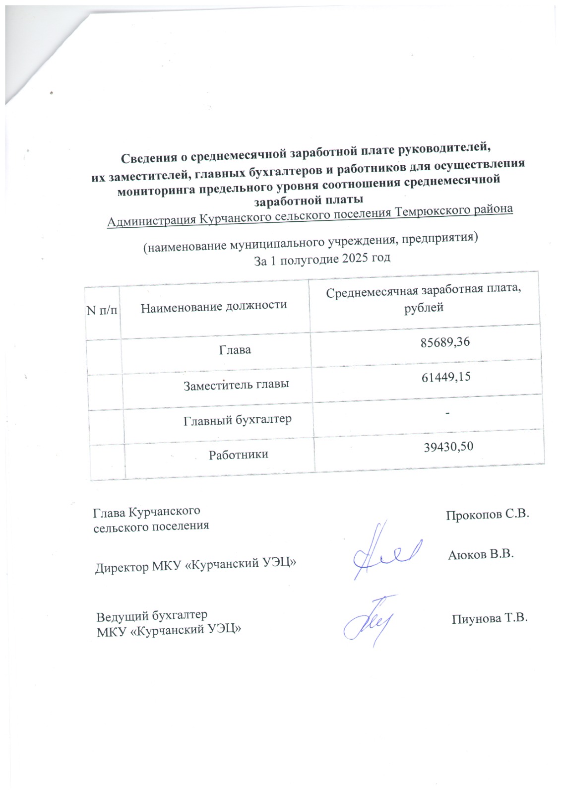 Сведения о среднемесячной заработной плате руководителей, их заместителей, главных бухгалтеров и работников для осуществления мониторинга предельного уровня соотношения среднемесячной заработной платы за 1 полугодие 2025 год