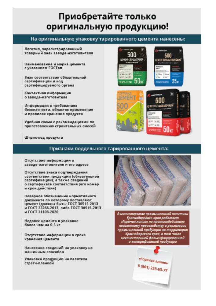 В министерстве промышленной политики Краснодарского края работает Горячая линия по противодействию незаконному производству и реализации промышленной продукции на территории Краснодарского края, в том числе некачественной фальсифицированной и контрафактной продукции