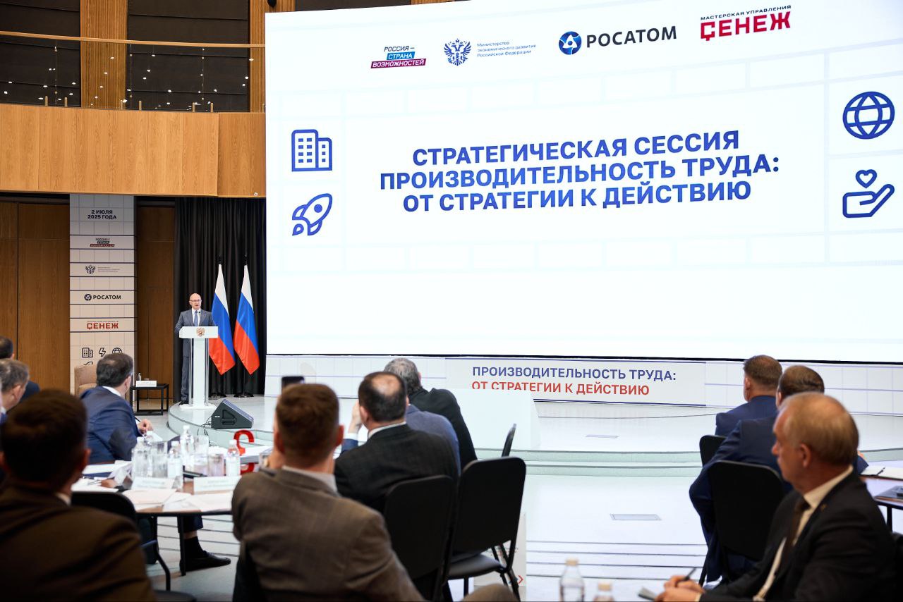 На стратегической сессии обсудили задачи нового этапа реализации федерального проекта «Производительность труда», входящего в нацпроект «Эффективная и конкурентная экономика». С 2025 года в него включаются все отрасли экономики, а также учреждения социальной сферы – от школ и больниц до учреждений культуры и спорта.