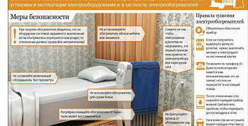 Соблюдение правил пожарной безопасности при использовании электрообогревателей защитит и от холода, и от пожара. Как любой нагревательный прибор, электрообогреватель требует осторожного обращения. Кроме того, необходимо следить за тем, чтобы электросеть не была перегружена, а сам электроприбор находился на достаточном расстоянии от легковоспламеняющихся предметов